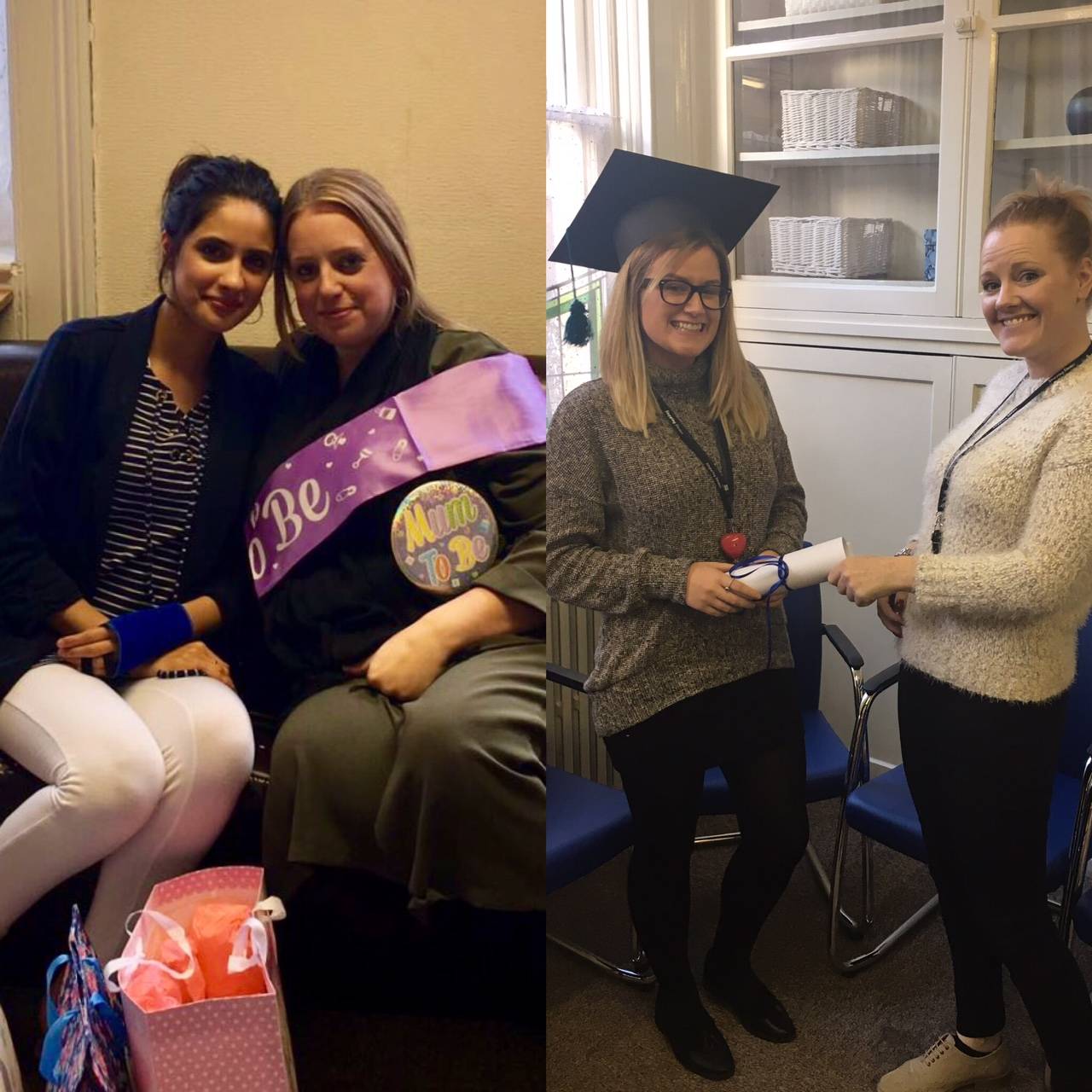 The pictures above show Kate and our administrator Samera at Kate’s baby shower last month, and Natasha being presented with her ‘certificate’ by Karrina Usher, our Women’s Services Manager.
