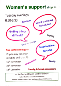 A fortnightly evening drop in service 6.30pm – 8.30pm running from Shefford at the local Children’s Centre.