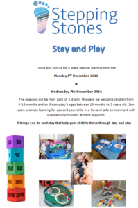 In childcare we are looking forward to delivering stay and play sessions here at Stepping Stones for the first time this December 2016 and we would love you to be a part of them.