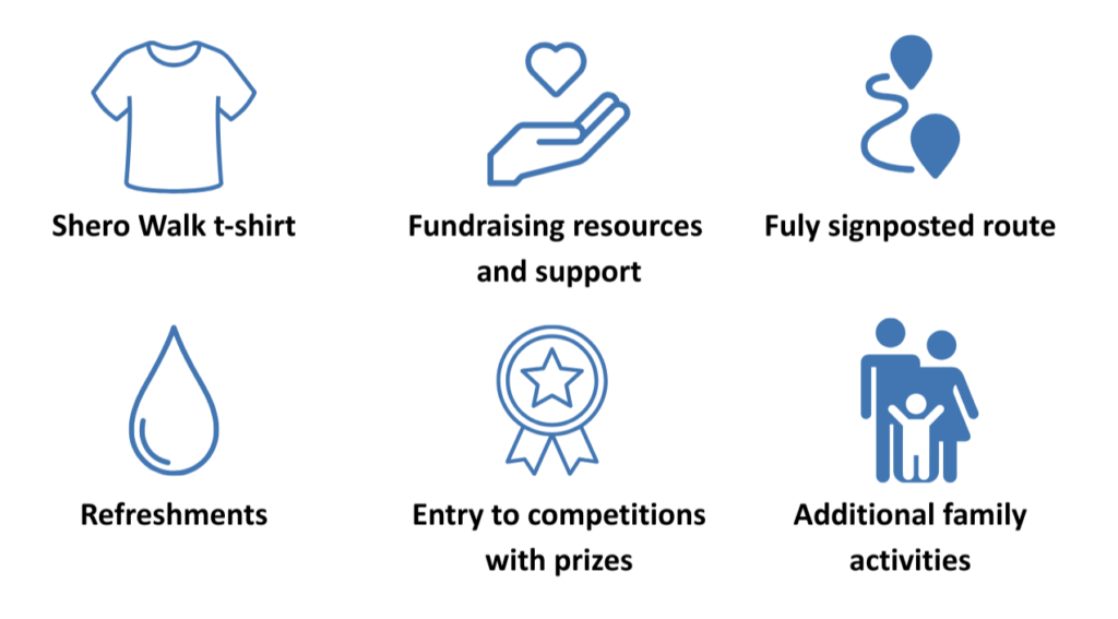 Your entry fee goes towards the cost of putting on this charity walk. We ask all participants to raise as much sponsorship money as possible to support our continued work with vulnerable women and children in Luton. Setup a Just Giving page to collect donations online or download the Shero Walk Sponsorship Form.